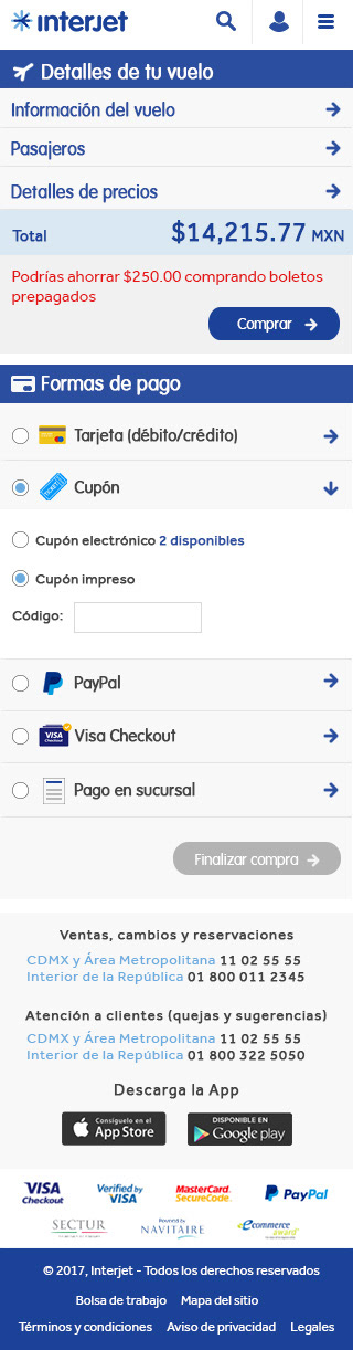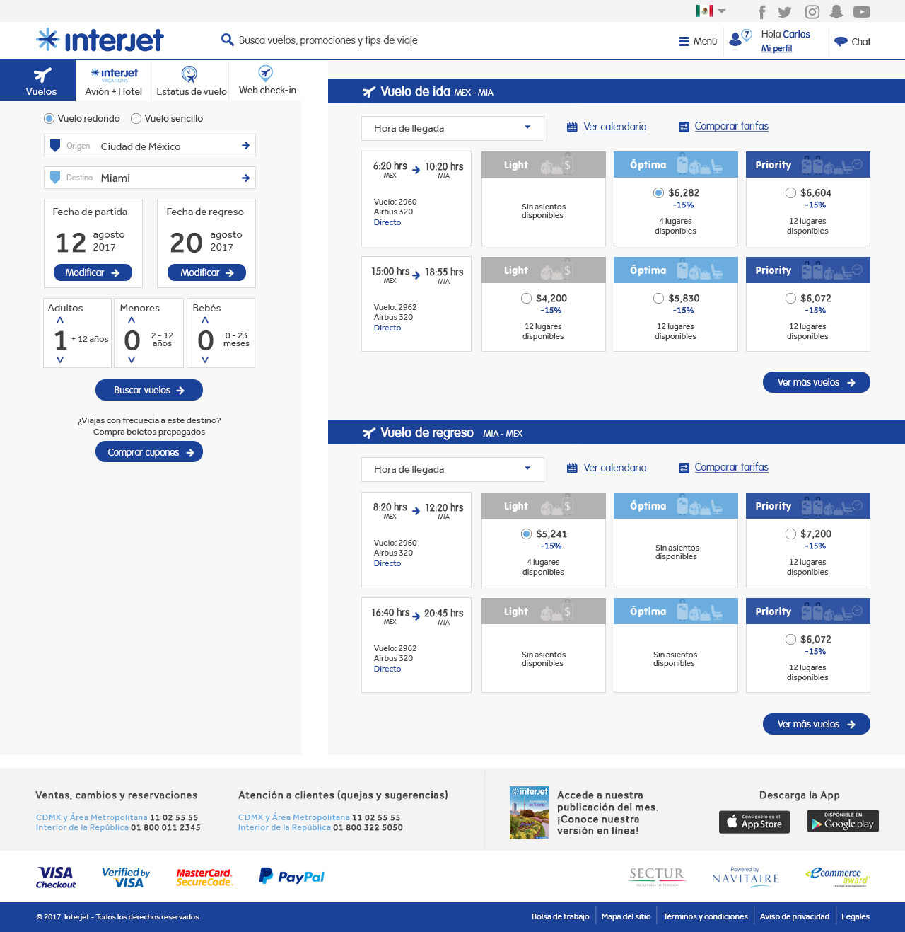 Realizació de estudio de usabilidad, con el fin de generar una propuesta gráfica para el rediseño del sitio de Interjet, considerando mejoras en el flujo del usuario como resultado del benchmark realizado con competidores nacionales y extranjeros, para este proyecto se consideró el proceso mobile first.