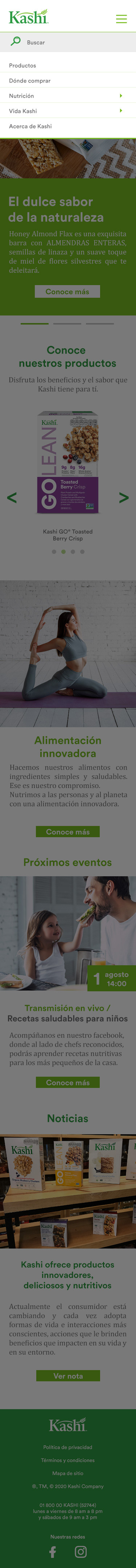 Rediseño del sitio web Kashi (Kellogg's), se buscó en todo momento reflejar la identidad visual de Kashi para ir acorde a su línea saludable de cereales y barras.